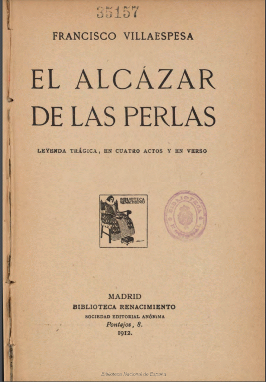 El alcázar de las perlas : Leyenda trágica en cuatro actos y en verso / Francisco Villaespesa