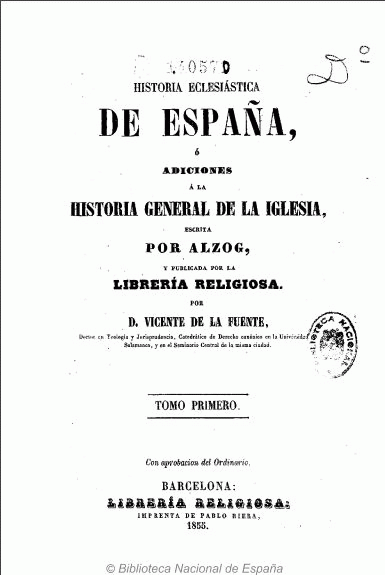 Historia eclesiástica de España : o adiciones a la historia general de la Iglesia escrita por Alzog y publicada por la Librería Religiosa