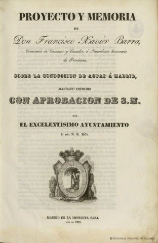Proyecto y memoria de don Francisco Xavier Barra, Comisario de Caminos y Canales ... sobre la conducción de aguas á Madrid ...
