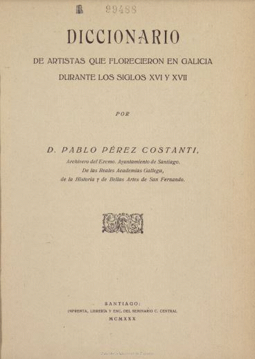 Diccionario de artistas que florecieron en Galicia durante los siglos XVI y XVII